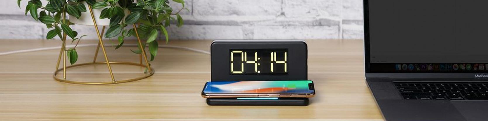 Модель : Часы настольные с беспроводным зарядным устройством Pitstop, белые