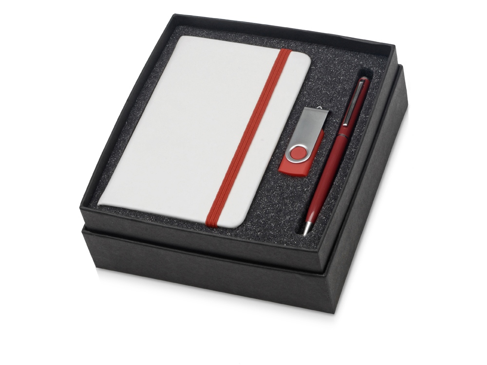Подарочный набор Reporter Plus с флешкой, ручкой и блокнотом А6, красный