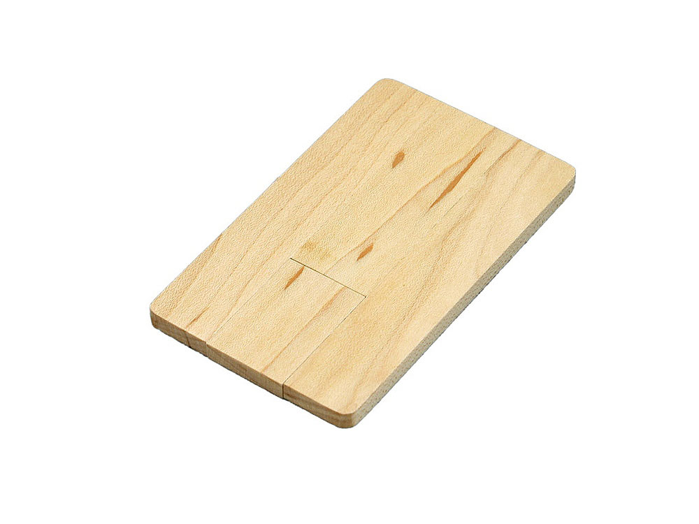 Флеш-накопитель в виде деревянной карточки с выдвижным механизмом, объем памяти 8 Гб. Деревянный корпус.