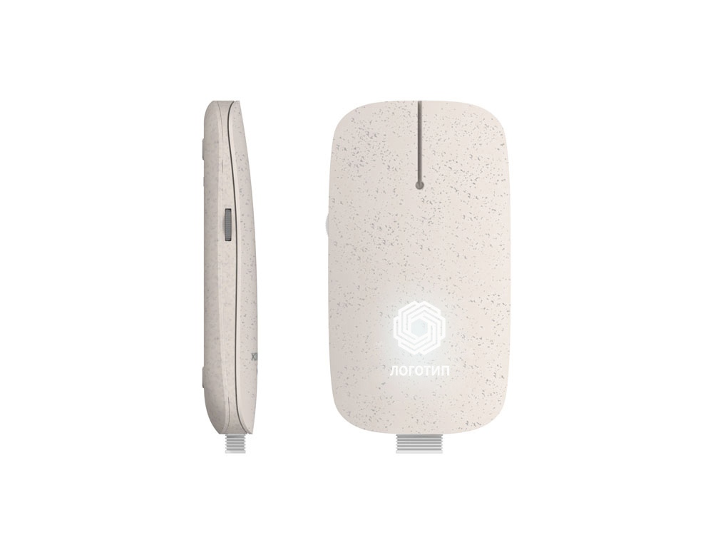 Ультратонкая беспроводная мышь без батареек в модном дизайне. Корпус изготовлен из биоразлагаемого пластика и на 30% из пшеничной соломы. Встроенный аккумулятор позволит вам не беспокоиться о том, что гаджет разрядится, мышкой можно пользоваться, даже в процессе зарядки. Время автономной работы -25 дней.