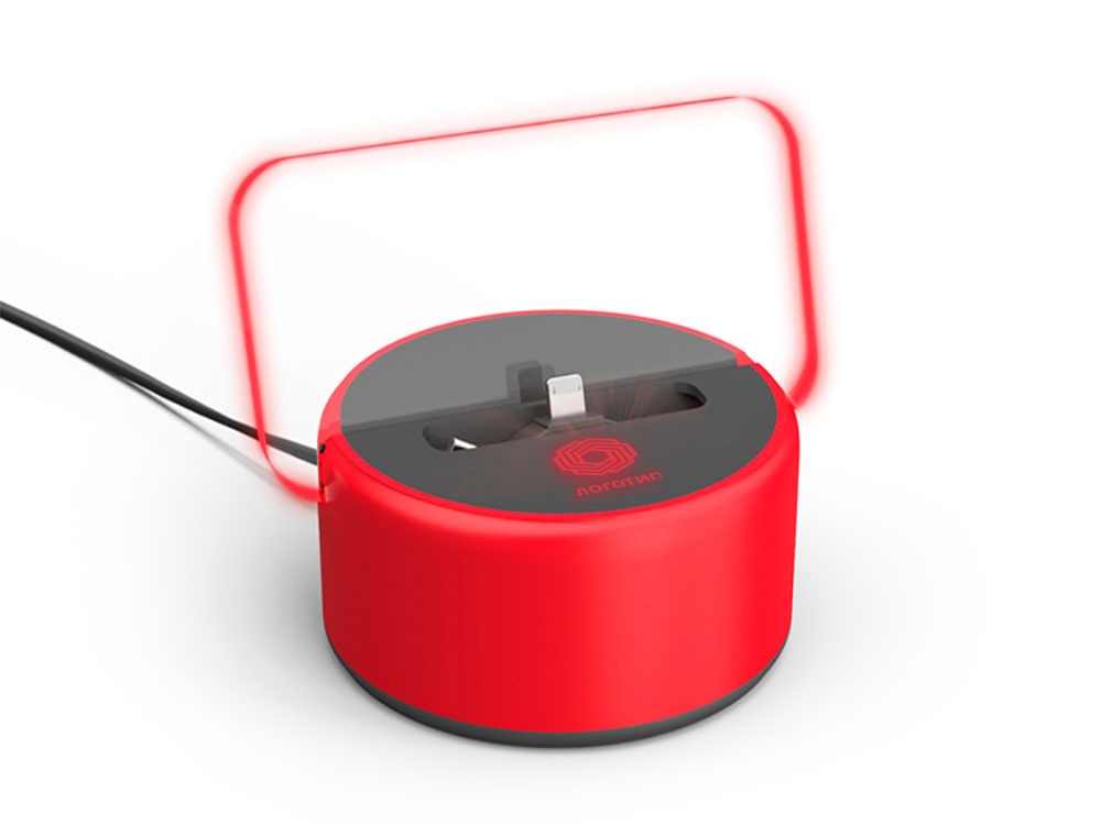 Универсальная зарядная станция 3-в-1 имеет разъемы Type-C, Lightning и Micro USB. Дополнительный USB разъем для зарядки вашим собственным кабелем или для передачи данных (например, чтобы считать флеш-карту). Черная акриловая поверхность подсвечивается во время зарядки и отключается, когда зарядка окончена. Дизайн украшен яркой подсветкой лого и съемными силиконовыми кольцами.