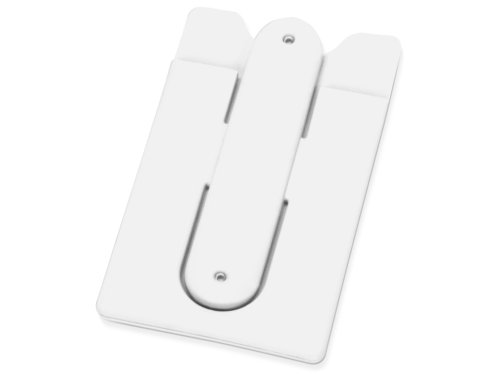 Чехол для визиток и кредитных карт с функцией подставки. За счет клейкой основы прикрепляется к обратной стороне телефона или любой другой плоской поверхности.
