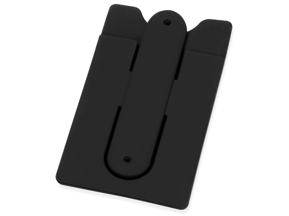 Чехол для визиток и кредитных карт с функцией подставки. За счет клейкой основы прикрепляется к обратной стороне телефона или любой другой плоской поверхности.