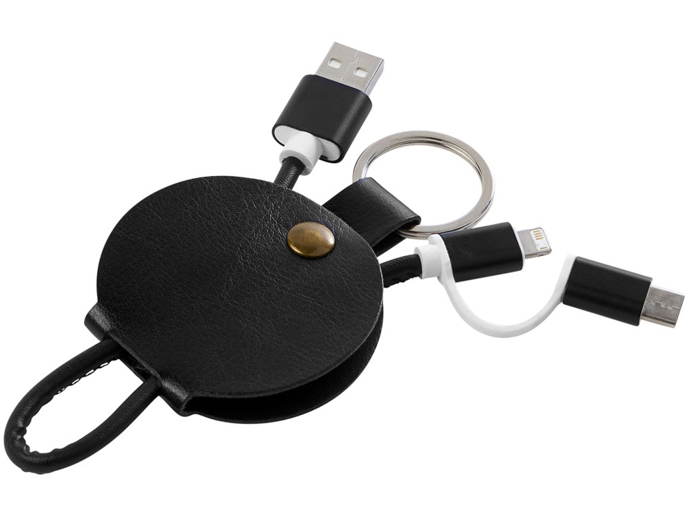 Кабель для зарядки Gist 3-в-1. Кабель для зарядки Gist 3-в-1 закрыт мягким защитным манжетом и оснащен разъемом USB типа С и двойным разъемом 2-в-1, подходящим как для устройств с Apple iOS, так и с Android. С помощью имеющегося кольца зарядный комплект можно поцепить на ключи или сумку. Длина кабеля: 20 cm. ПУ. Тиснение (Блинт) на данный товар осуществляется бесплатно. Оплачивается только настройка оборудования в размере 5800 рублей на весь тираж.