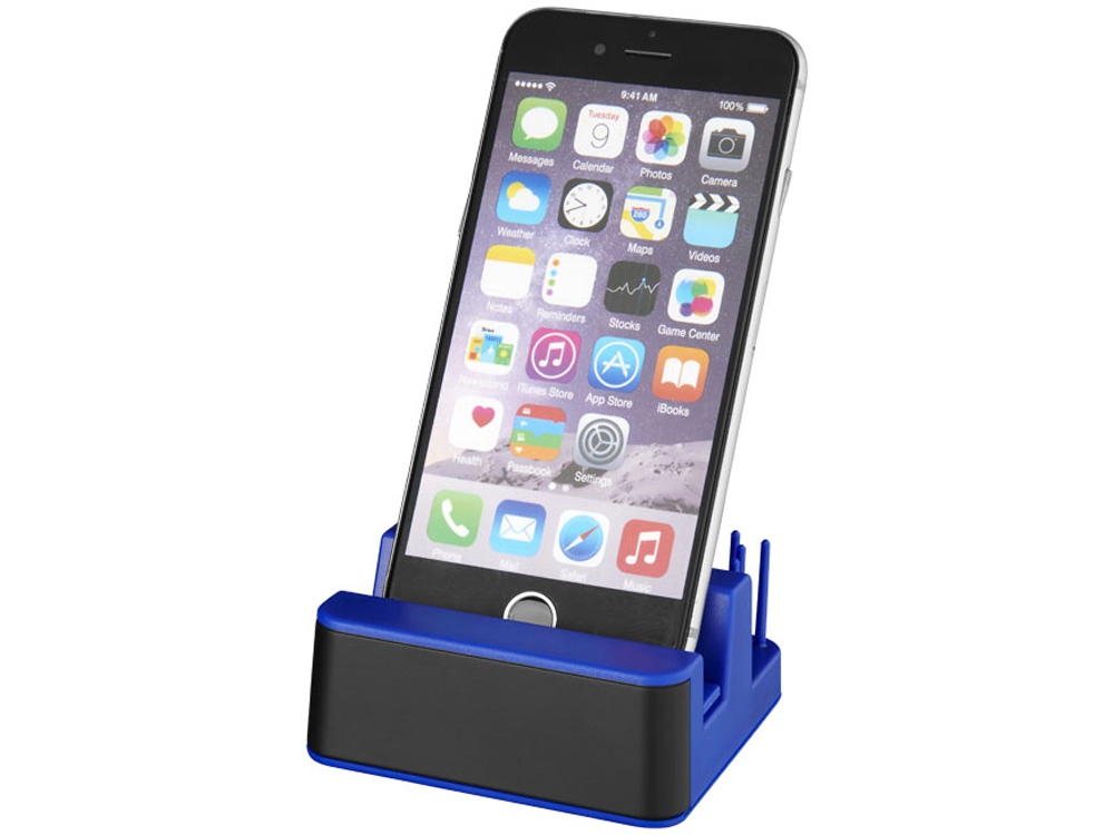 Настольная подставка Glint. Многофункциональная подставка Glint может использоваться как для смартфонов и планшетов, так и для ручек. Выгравируйте свой логотип на передней панели и смотрите, как он загорается, когда вы размещаете устройство на подставке. АБС-пластик. Гравировка (оптоволоконный лазер) (Без чернения) на данный товар осуществляется бесплатно. Оплачивается только настройка оборудования в размере 950 рублей на весь тираж.