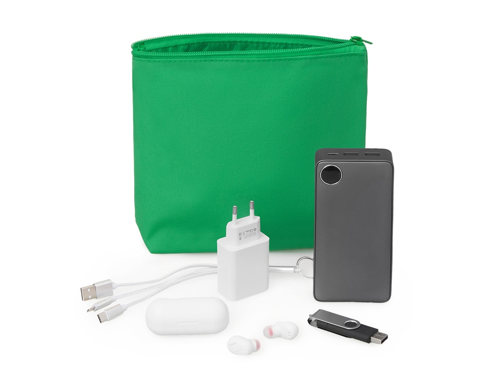 Органайзер для электроники и проводов Amalia из полиэстера 300D с подкладкой, зеленый
