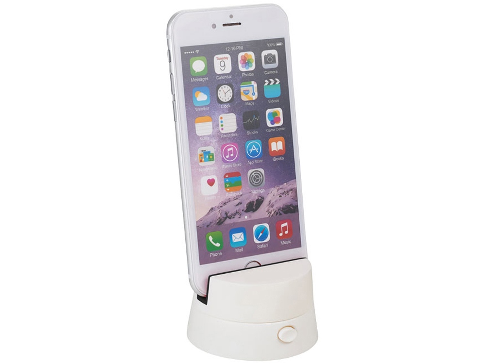 Подставка для телефона и планшета Panaram. Подставку можно использовать для смартфонов и планшетов. Уникальный дизайн. Вы можете делать панорамные снимки просто нажав на кнопку. Упакована в коробку. АБС пластик. Тампопечать (1 цвет (белые изделия)) на данный товар осуществляется бесплатно. Оплачивается только настройка оборудования в размере 3600 рублей на весь тираж.