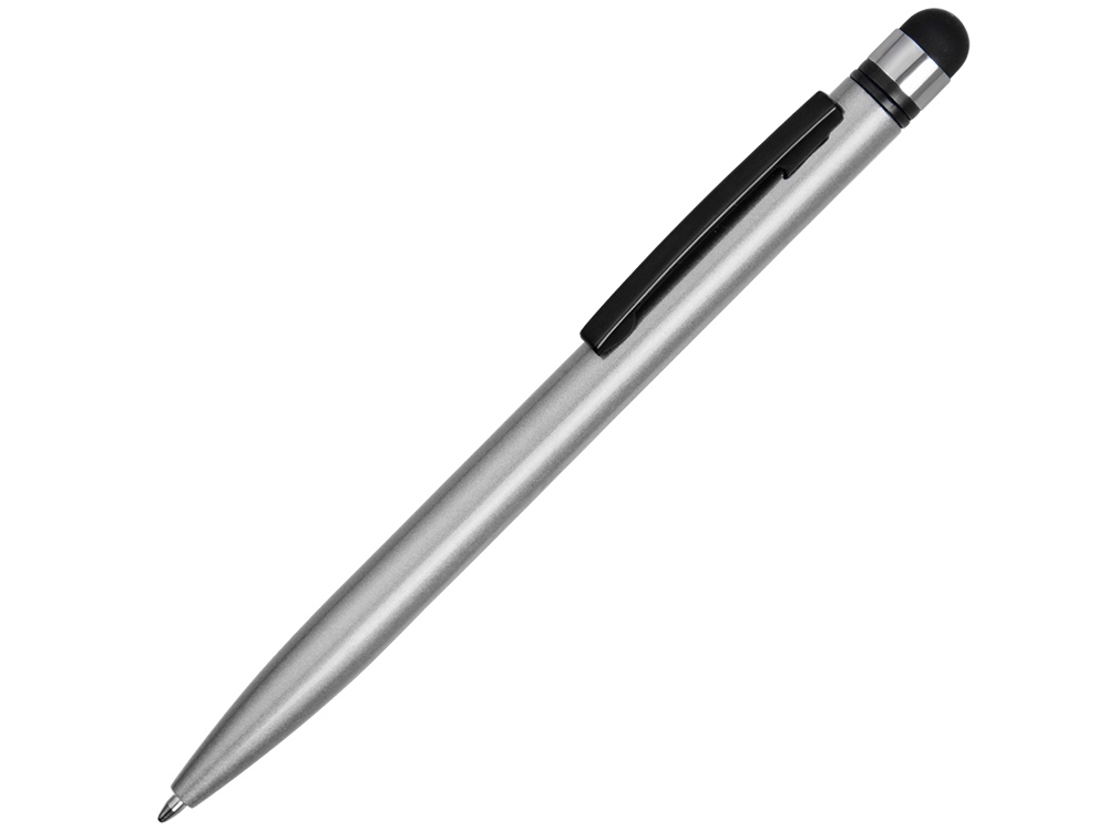 Ручка-стилус металлическая шариковая Poke, серебристый/черный