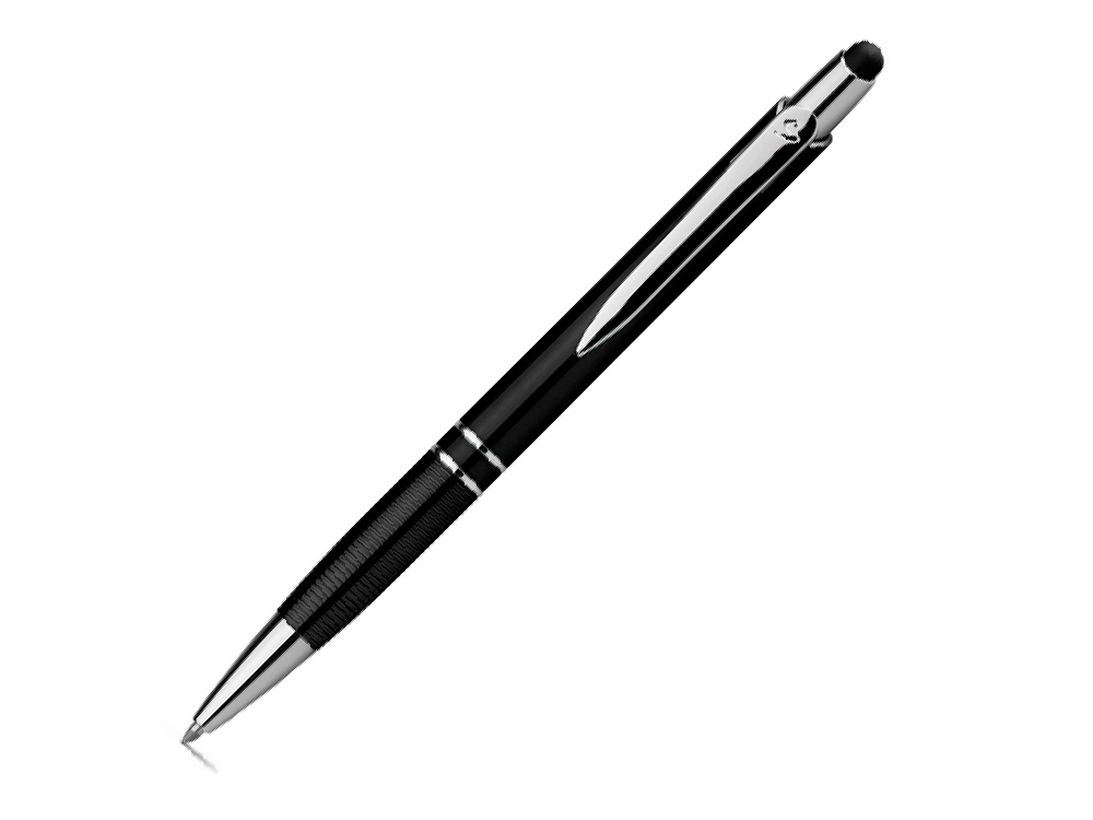 Пластиковая шариковая ручка с металлическим зажимом, синими чернилами и функцией стилуса. ø10 x 139 мм