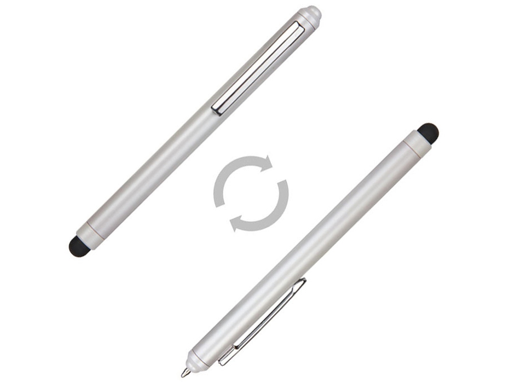 Стильная шариковая ручка-гибрид, включает в себя как собственно ручку (сменный стержень с черными чернилами), так и стилус, необходимый для использования сенсорных девайсов. Наконечник шариковой ручки спрятан в ее верхней части и становится видимым при переворачивании ручки. Возможно нанесение персонализации на пластиковый корпус.