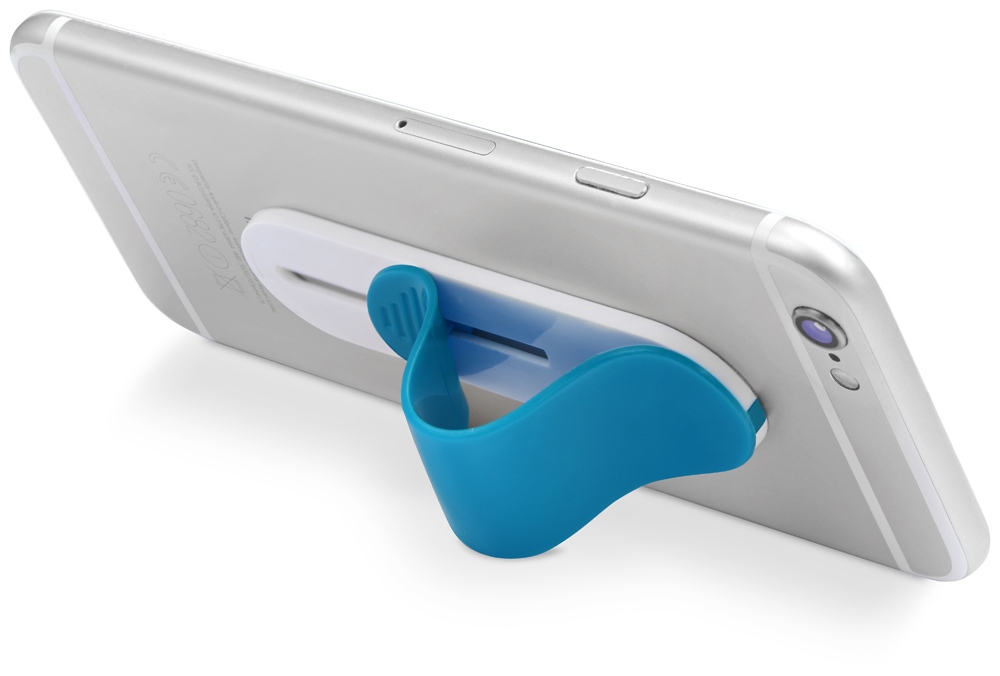 Сжимаемая подставка для смартфона. Для дополнительной устойчивости при наборе текста или использовании стилуса в пути вставьте палец в подставку. Стикер на задней поверхности изделия позволяет крепить его к телефону. АБС-пластик.
