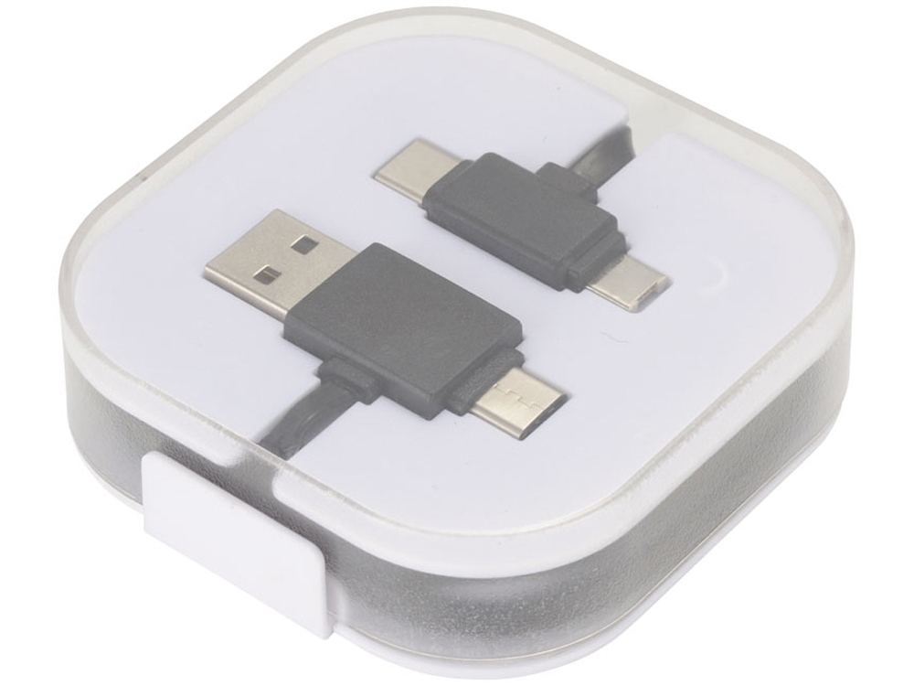 Кабель для зарядки 4-в-1 двух типов C: 1 USB типа A и 2-в-1 двухконтактных наконечников для устройств Apple iOS и Android. Используются как зарядка, так и передача данных. Чтобы зарядить устройства Apple, поместите кабель стороной, у которой нет контактов в устройстве, чтобы зарядить устройства Android, поместите кабель со стороны, в которой есть контакты в устройстве.