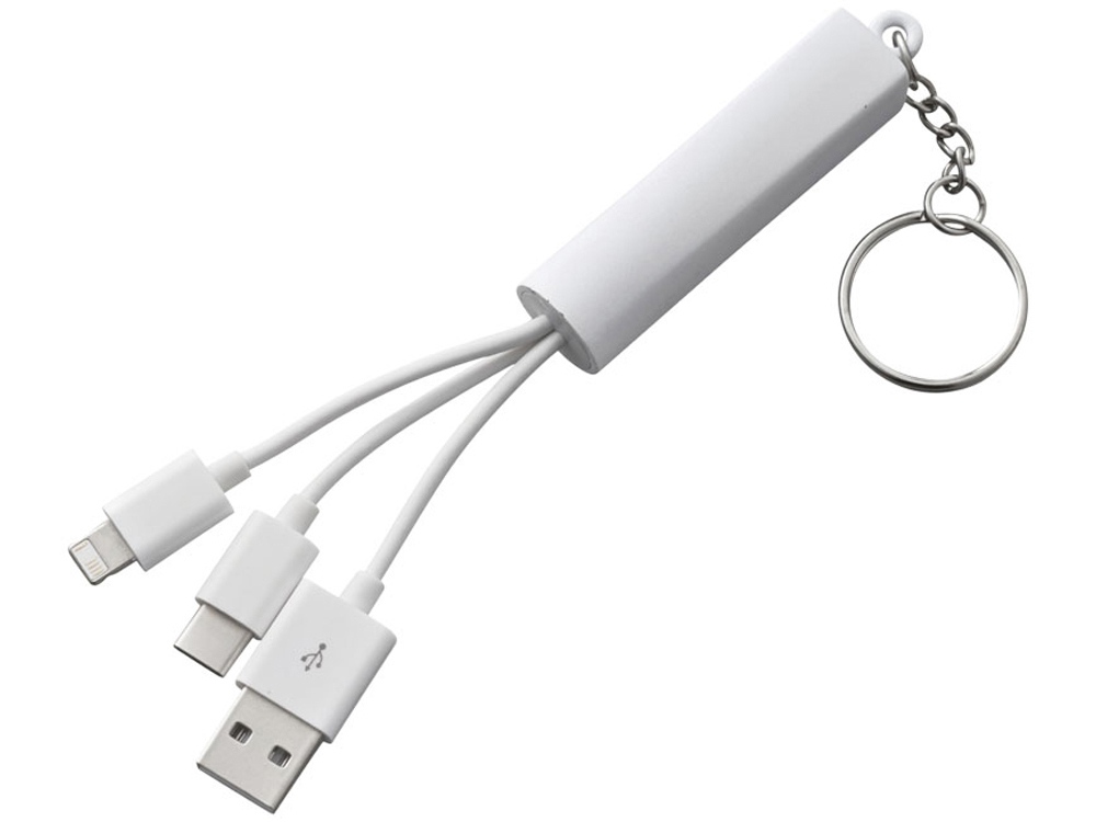 Светодиодный кабель для зарядки Route 3-в-1 с брелоком. Кабель для зарядки Route 3-в-1 с коннекторами 1 type C, 1 USB type A и двойным совместимым коннектором 2-в-1 для устройств с ОС Apple® iOS и Android. Кабель светится во время зарядки и имеет брелок. Для зарядки устройств Apple подключайте кабель стороной без контактов; для зарядки устройств с ОС Android подключайте кабель стороной с контактами. АБС-пластик. 3.