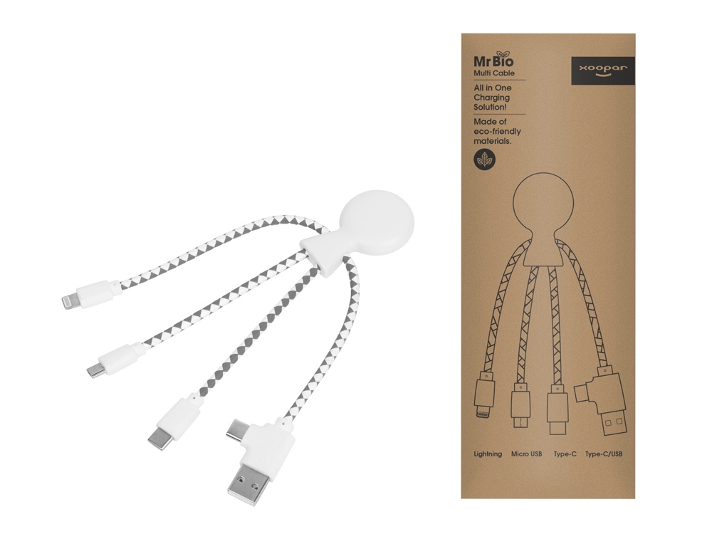 Mr. Bio - это зарядный кабель с несколькими адаптерами, который может зарядить практически любой современный гаджет. Кабель сделан с применением биоразлагаемых натуральных материалов, что является отличной альтернативой традиционным кабелям. Переходите на Mr. Bio для сокращения глобальных кабельных отходов!