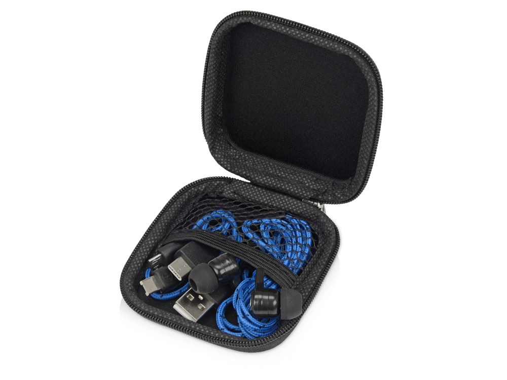 Набор с наушниками и зарядным кабелем 3-в-1 In motion, синий