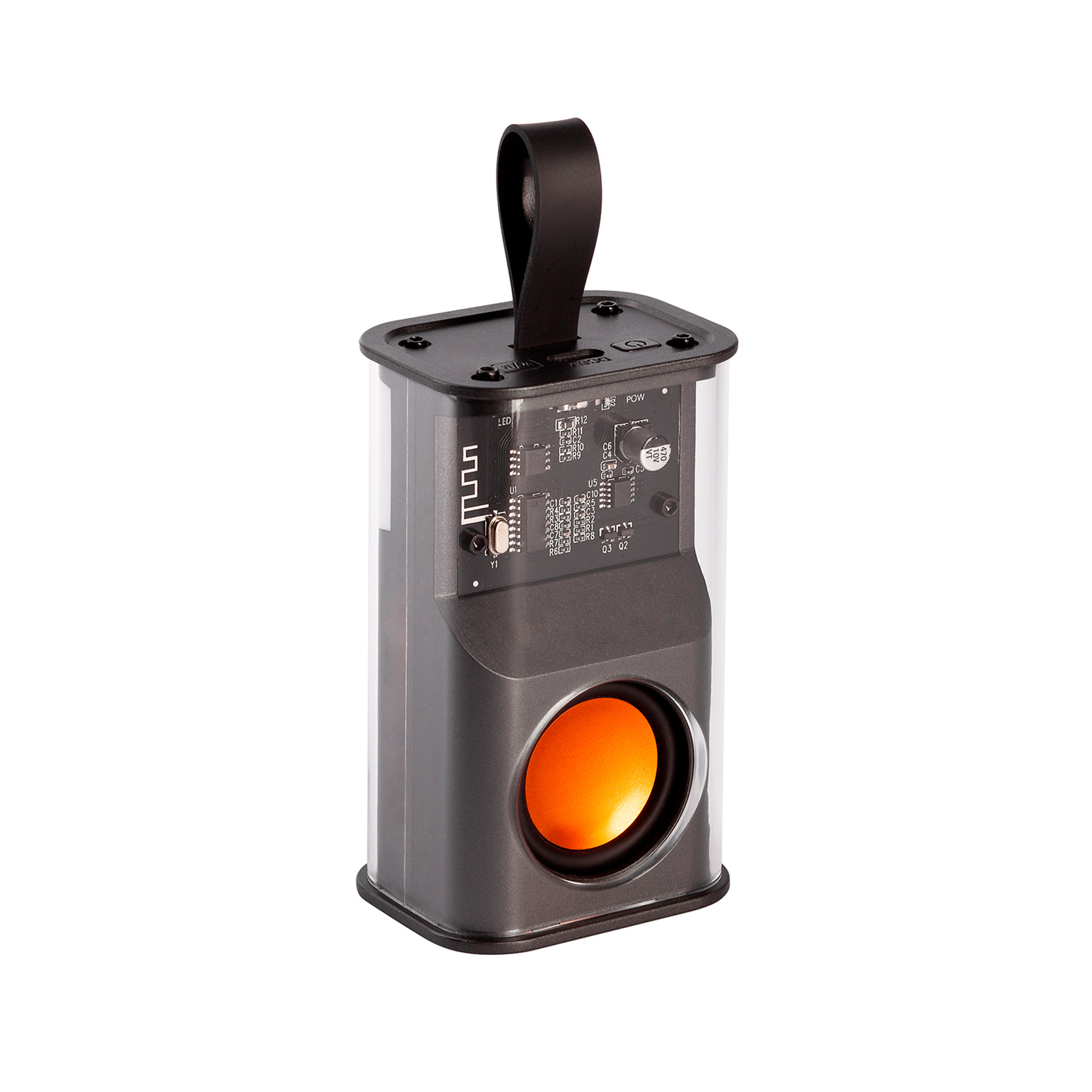 Bluetooth колонка "Hi-Fi" 5Вт с разноцветной подсветкой и прозрачным корпусом, черный с оранжевым
