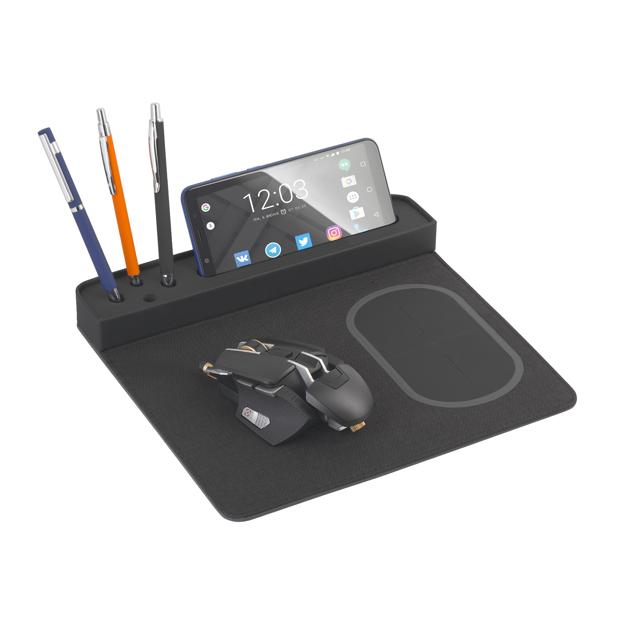 Настольная подставка с беспроводным зарядным устройством, черный