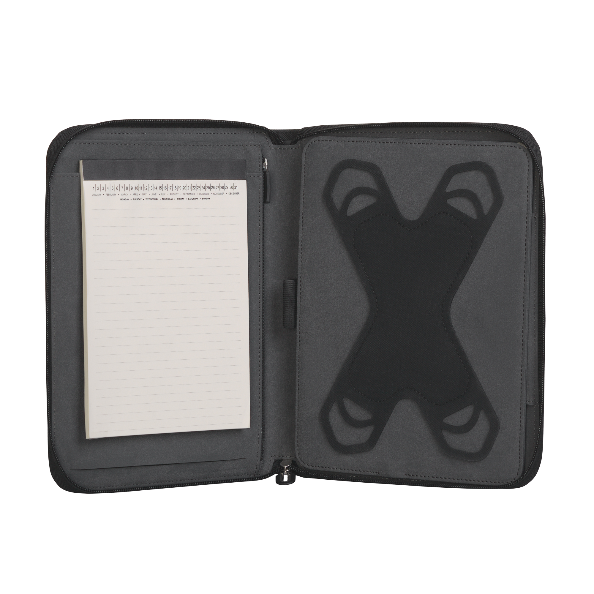 Папка содержит внутренний карман (за блокнотом) на молнии и петлю-резинку под ручку. Также в папку вложены шнур microUSB/USB длиной 43 см и ИНСТРУКЦИЯ НА РУССКОМ ЯЗЫКЕ.