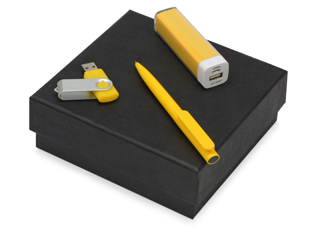 Подарочный набор On-the-go с флешкой, ручкой и зарядным устройством, желтый