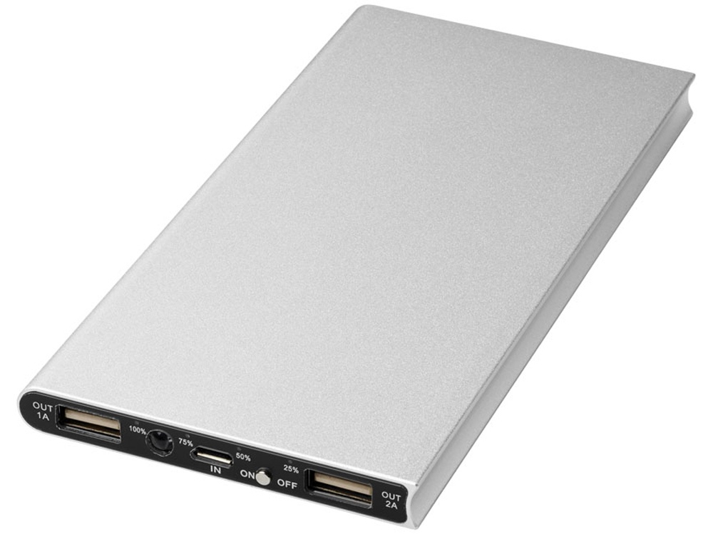 Алюминиевое портативное зарядное устройство Plate 8000 мА∙ч, серебристый