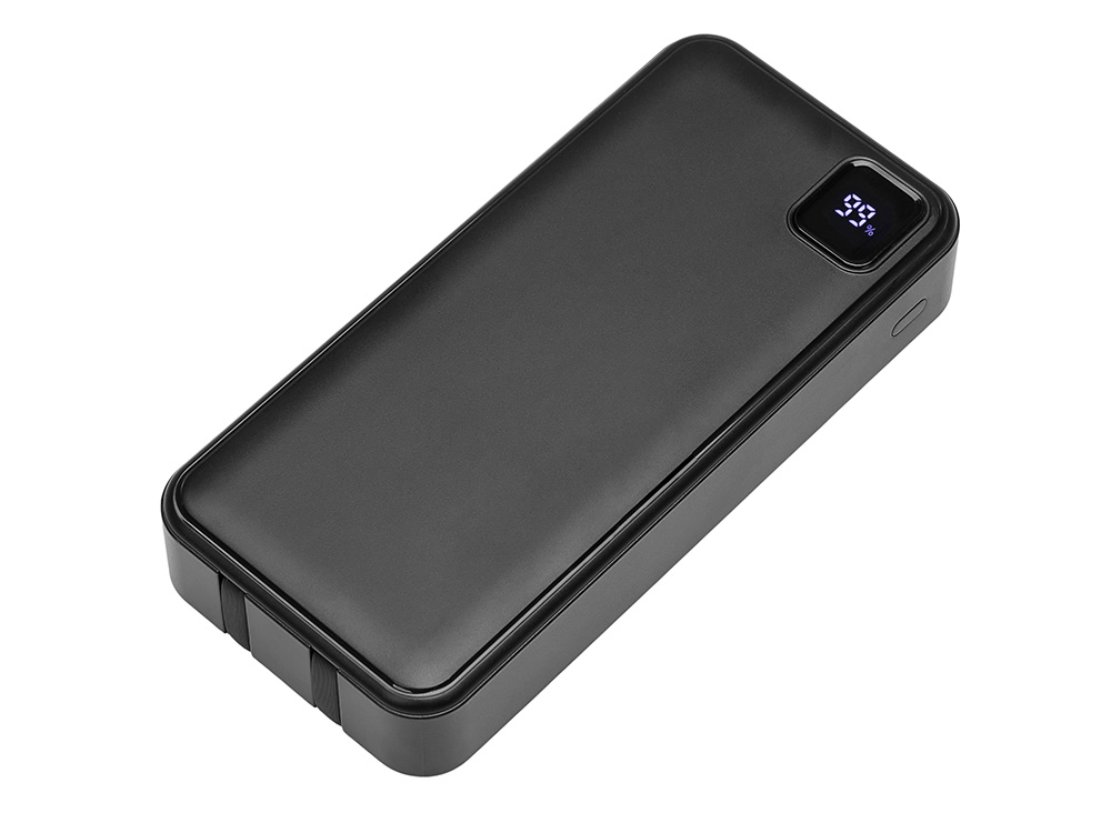 Внешний аккумулятор со встроенными кабелями Фрэйм Про, быстрая зарядка, 20000мач, черный