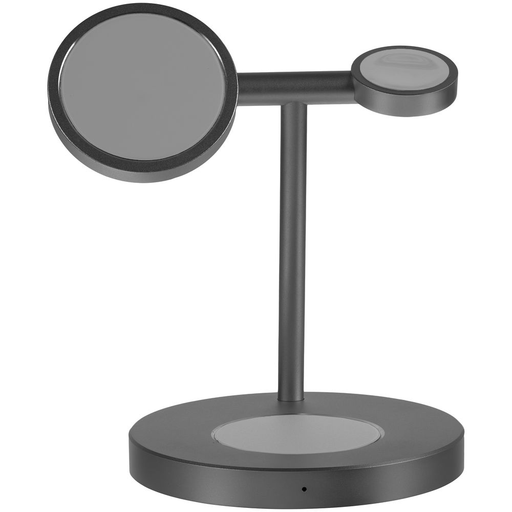 Станция может заряжать одновременно 3 устройства: беспроводные наушники с соответствующей функцией беспроводного заряда, смартфон, часы Apple Watch 2–8. Смартфоны iPhone 12–15 удерживаются на станции встроенными в их корпус магнитами. Прочие телефоны рекомендуем дополнить магнитным стикер-адаптером Magmate для надежного удержания на зарядной области.
