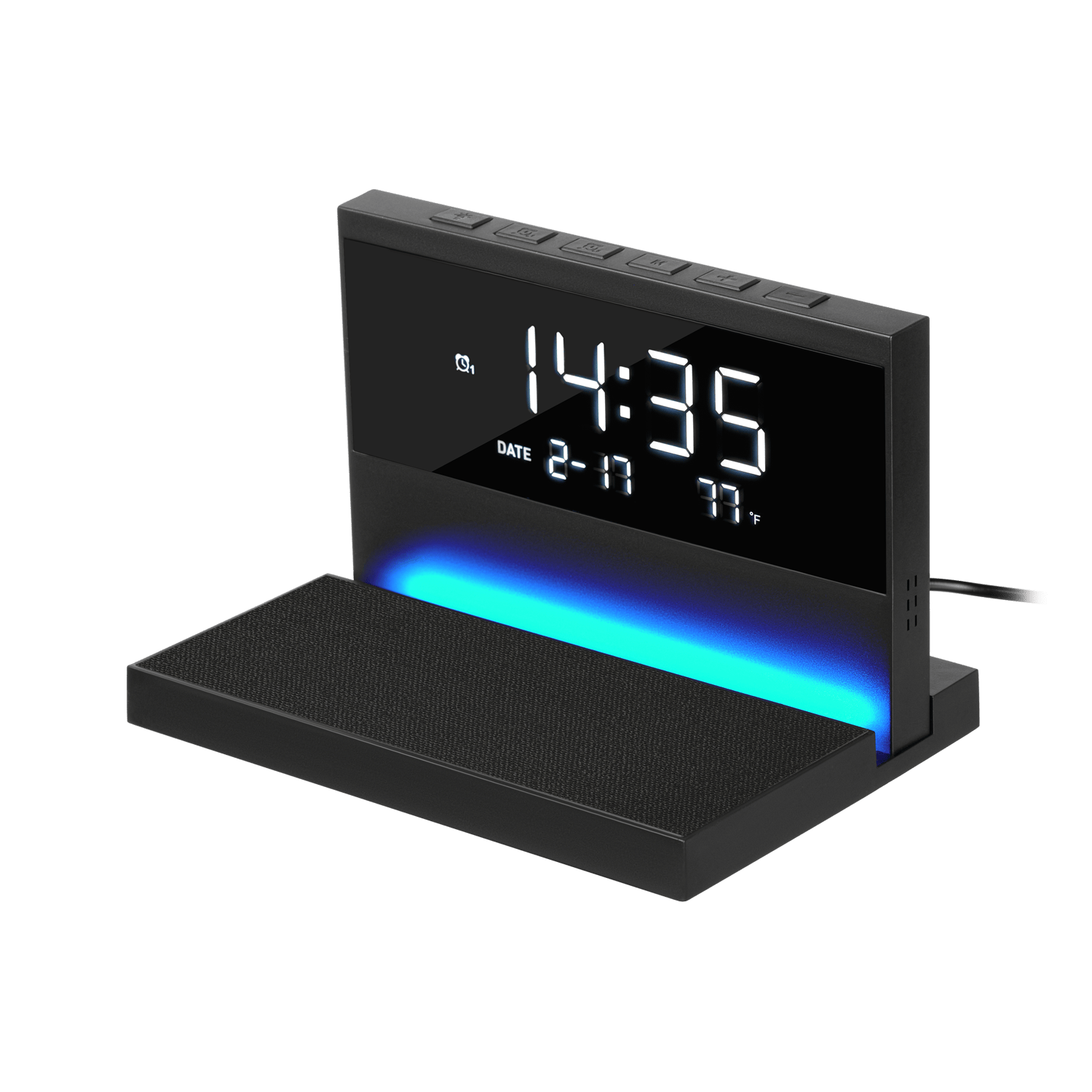 Цифровой дисплей: время, дата, температура в помещении, будильник