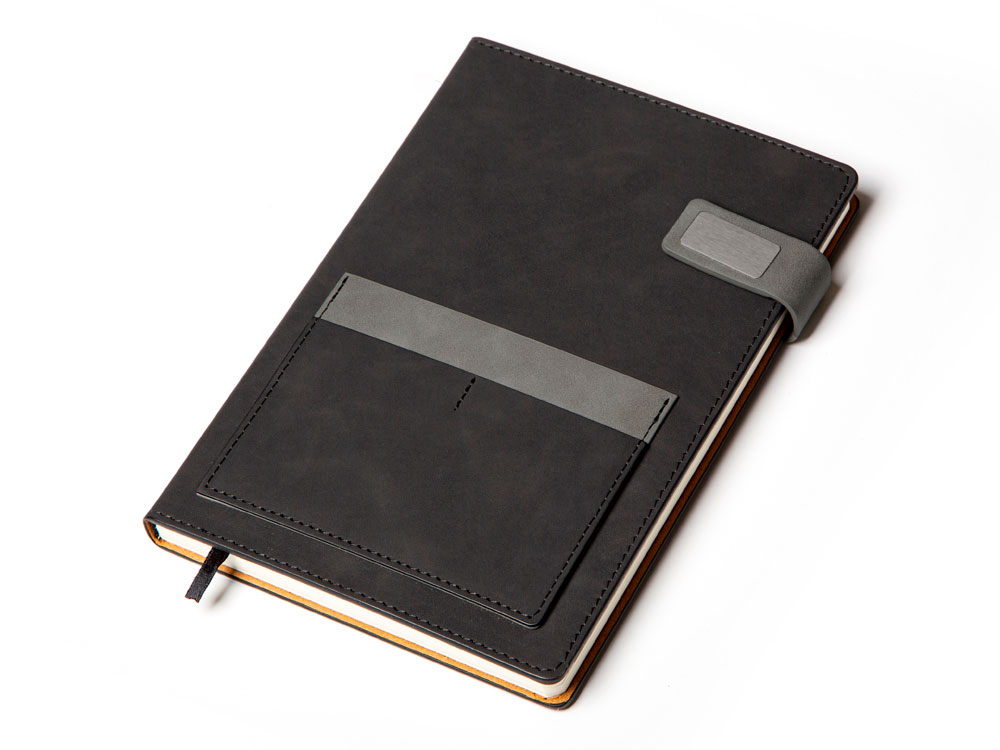 Бизнес блокнот А5 Freya с клапаном и карманом для визиток, твердая обложка, 128 листов, черный и свет