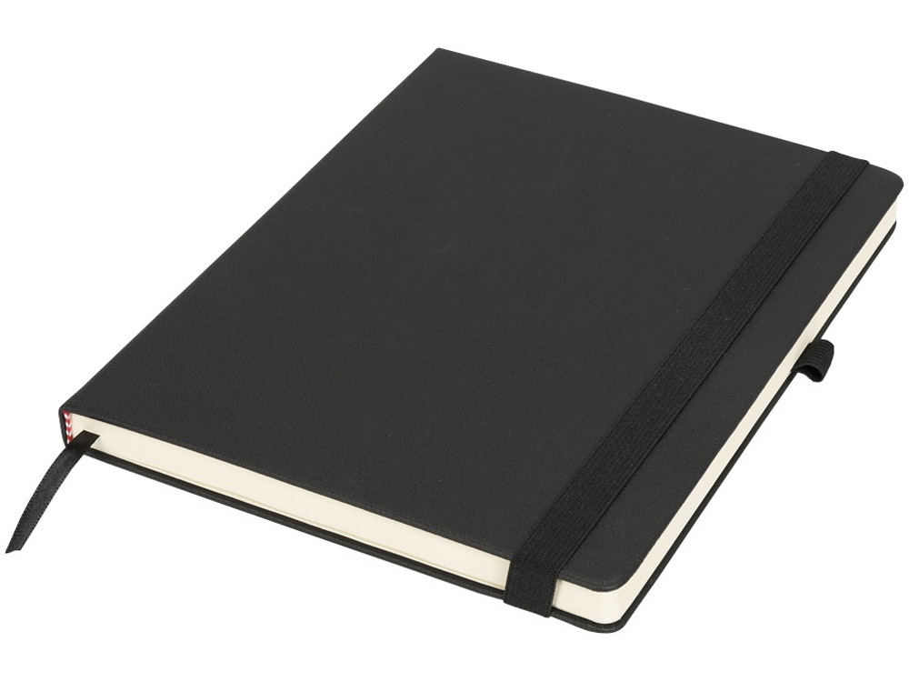 Блокнот Rivista большого размера. Блокнот Rivista отличается стильным современным дизайном с высококачественной обложкой, идеально подходящей для нанесения логотипа и информации вашей компании. Предлагаются современные цвета. Также предусмотрена эластичная застежка, держатель для ручки, лента-закладка и кармашек изнутри на задней стороне обложки. Содержит 128 листов линованной бумаги (70 г/м²) кремового цвета. ПУ.