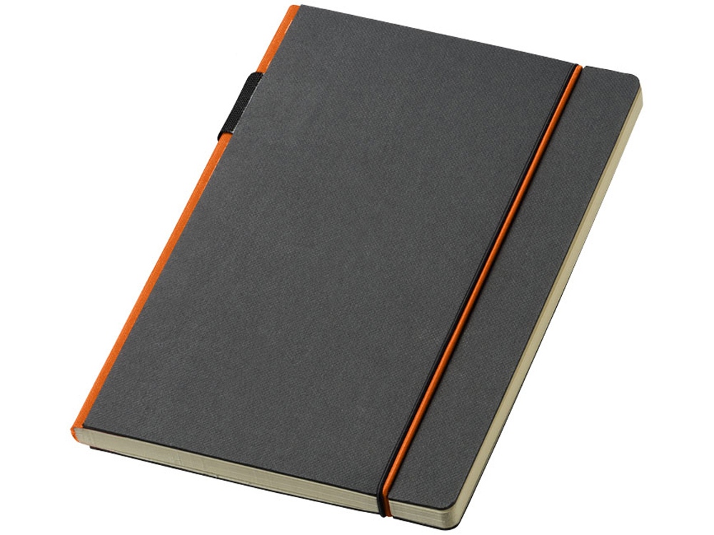 Блокнот Cuppia. Цветной корешок и эластичная застежка подчеркивают стиль этого классического эксклюзивного блокнота с черной твердой обложкой (размера A5) и его индивидуальность. Эластичная петелька для ручки на корешке предназначена для дополнительного удобства. Блокнот содержит 80 листов линованной бумаги (80 г/м²). Предлагается в подарочной коробке-рукав Journalbooks. Картон. Тампопечать (1 цвет (цветные изделия)) на данный товар осуществляется бесплатно. Оплачивается только настройка оборудования в размере 3600 рублей на весь тираж.