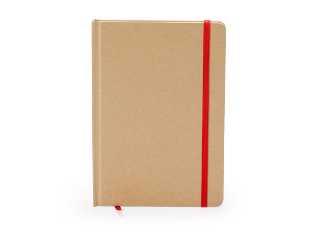 Блокнот А5 ESTELA с контрастной резинкой, бежевый/красный