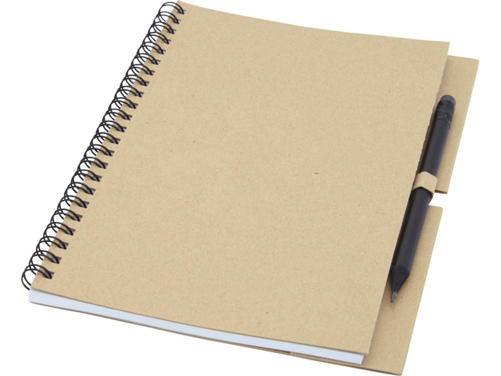 Блокнот Luciano Eco на пружине, с карандашом, средний, натуральный