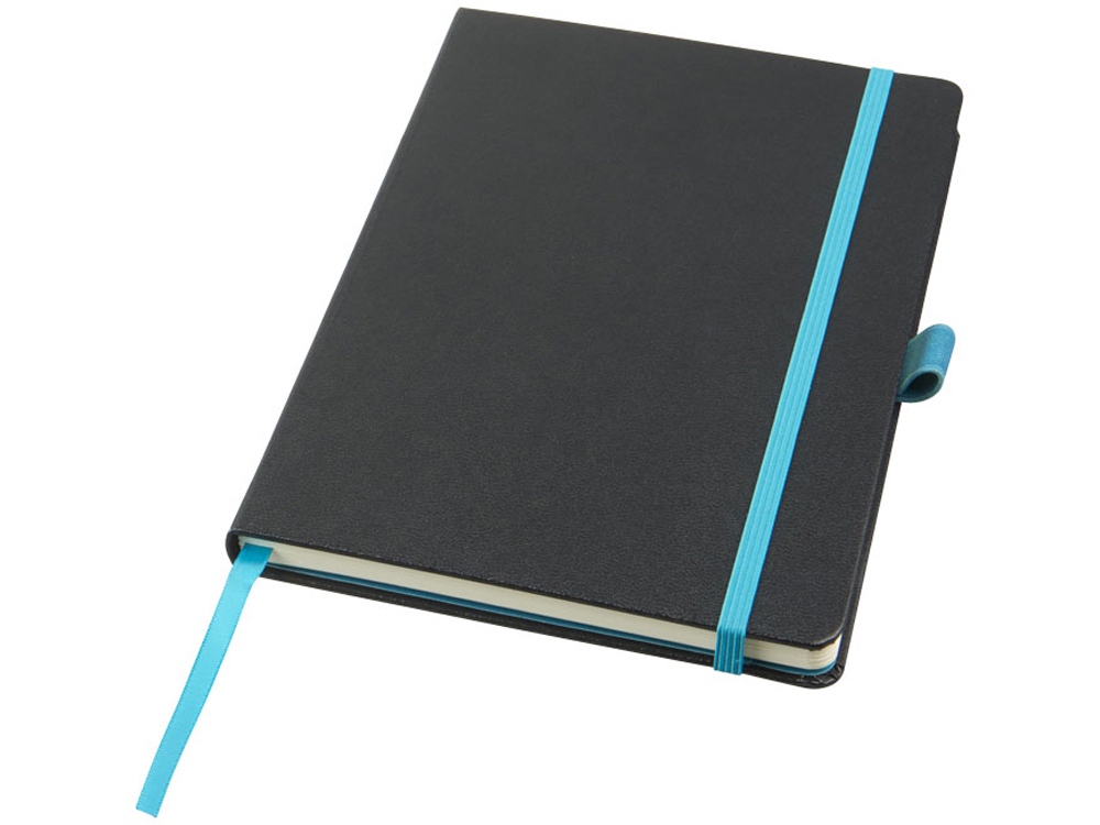 Цветной блокнот Melya. Стильный блокнот (размер А5 для ориентации) для креативных профессионалов, чтобы делать заметки, наброски или рисовать. Обложка различных цветов с эластичной застежкой в цвет и закладкой придает блокноту особый, свежий вид. 40 листов кремовой линованной бумаги (80 г/м2) и 40 листов чистой бумаги (80 г/м2) с кармашком для заметок и бумаг. Упакован в коробку-рукав. Бумага в виде кожзаменителя. Тиснение (Блинт) на данный товар осуществляется бесплатно. Оплачивается только настройка оборудования в размере 5800 рублей на весь тираж.