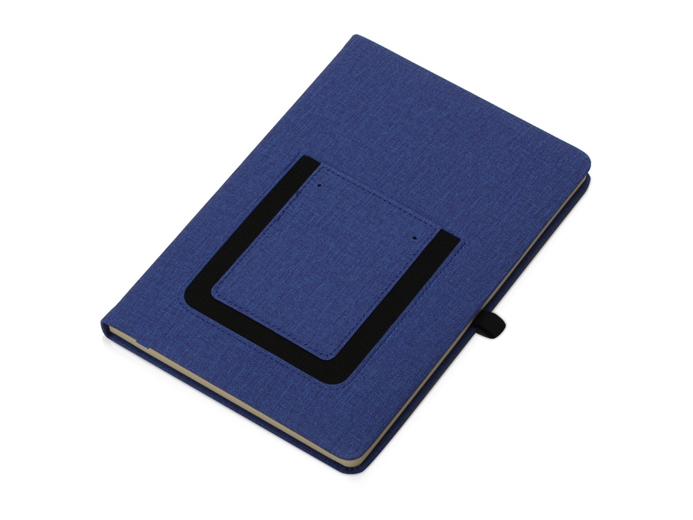 Стильный современный блокнот формата А5. На передней обложке расположен удобный карман для мобильного телефона, бумаг и визиток. Специальная подкладка обложки делает блокнот мягким на ощупь. Покрытие обложки имитирует текстуру текстиля, не скользит и отлично подходит для нанесения логотипа.