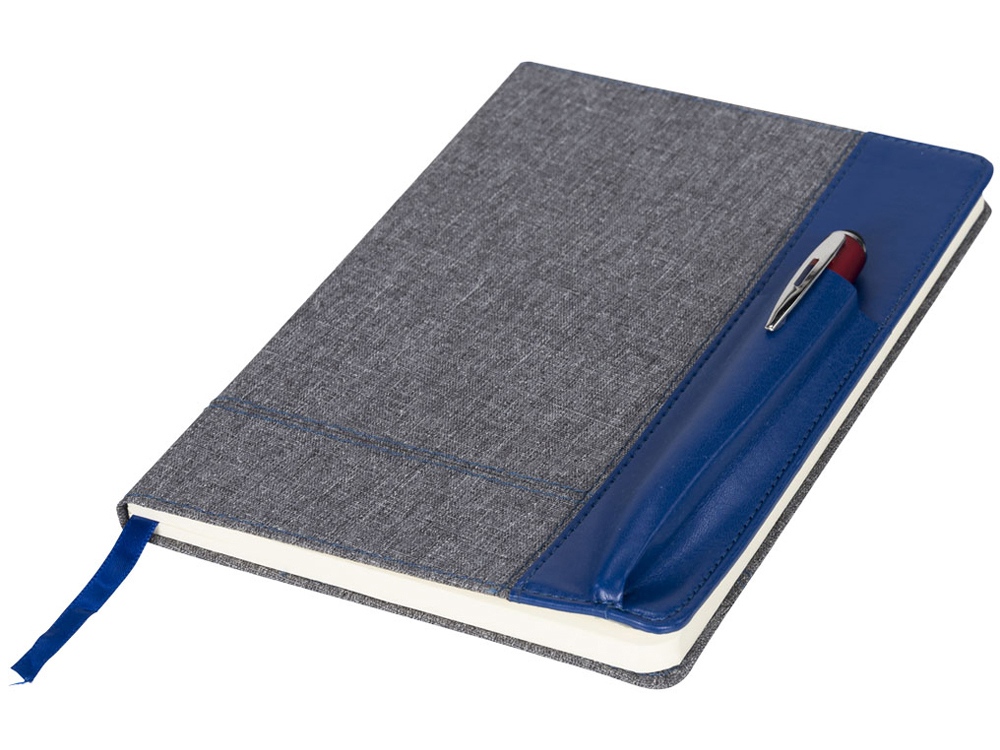 Блокнот А5 с кожаной вставкой, серый/синий