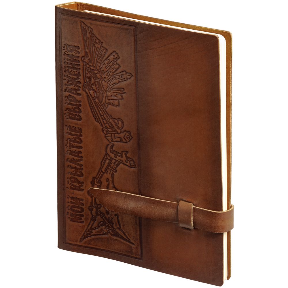 Блокнот на кольцах с обложкой из натуральной кожи с тиснением.