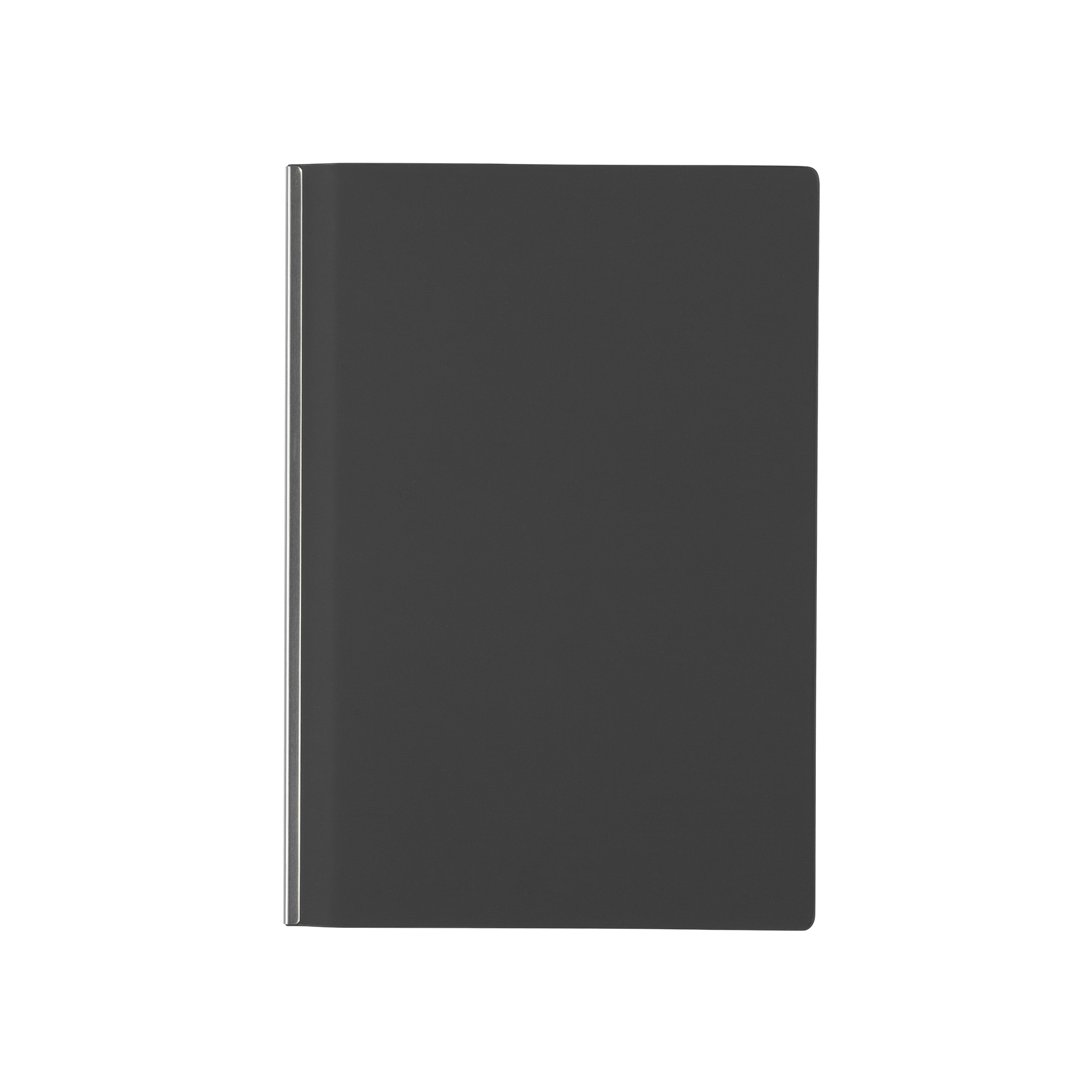Главной особенностью дизайна блокнота является гибкая «трогательная» soft touch обложка, а также металлический корешок и срез блока в цвет обложки. Удобный А5 формат, компактный размер и лента-ляссе дополняют образ.