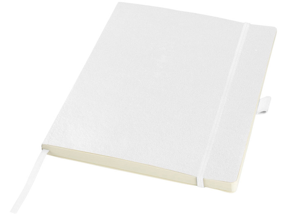 Блокнот Pad размером с планшет. Гибкий блокнот размером с iPad - более удобно носить с планшетом. 48 листов кремовой линованной бумаги и 48 листов белой бумаги (80 г/м2), петелька для ручки, эластичная застежка, закладка и кармашек для документов внутри заднего форзаца. Упакован в белую коробку-рукав. Бумага в виде кожзаменителя.