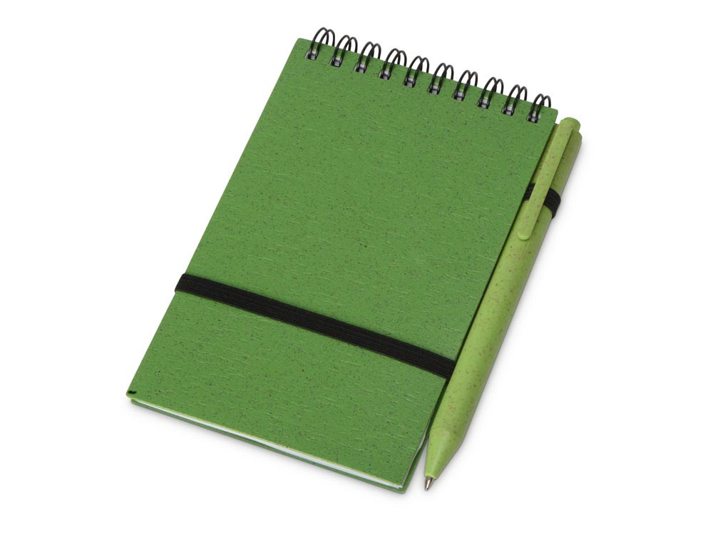 Блокнот B7 Toledo S, зеленый + ручка шариковая Pianta из пшеничной соломы, зеленый