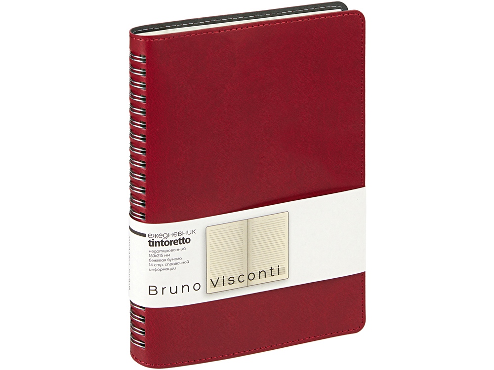 Недатированный ежедневник формата А5 Tintoretto ТМ Bruno Visconti - практичное решение для тех, кто любит ежедневники на пружине. Полускрытый гребень позволяет держать ежедневник открытым на столе и комфортно вести записи. 272 страницы блока произведены из превосходной бежевой бумаги плотностью 70 г/кв.м, а неброская линовка каждой страницы позволяет не отвлекаться на лишние детали. Гибкую обложку из искусственной кожи украшает отстрочка декоративной нитью по краю.