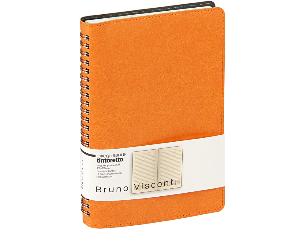 Недатированный ежедневник формата А5 Tintoretto ТМ Bruno Visconti - практичное решение для тех, кто любит ежедневники на пружине. Полускрытый гребень позволяет держать ежедневник открытым на столе и комфортно вести записи. 272 страницы блока произведены из превосходной бежевой бумаги плотностью 70 г/кв.м, а неброская линовка каждой страницы позволяет не отвлекаться на лишние детали. Гибкую обложку из искусственной кожи украшает отстрочка декоративной нитью по краю.