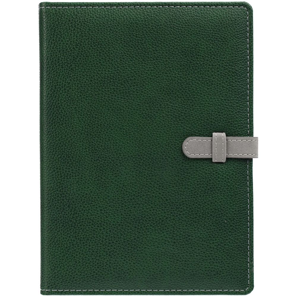 Ежедневник в мягкой суперобложке, выполнен из материала La Fite, зеленый FF, дополнен ляссе серого цвета.