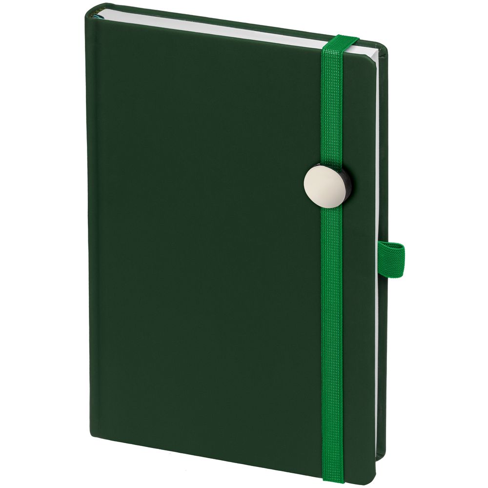 Ежедневник с твердой обложкой без поролона, выполнен из материала Soft Touch Ultra, зеленый FF, дополнен резинкой шириной 1 см, петлей-резинкой для ручки, капталом и ляссе ярко-зеленого цвета.