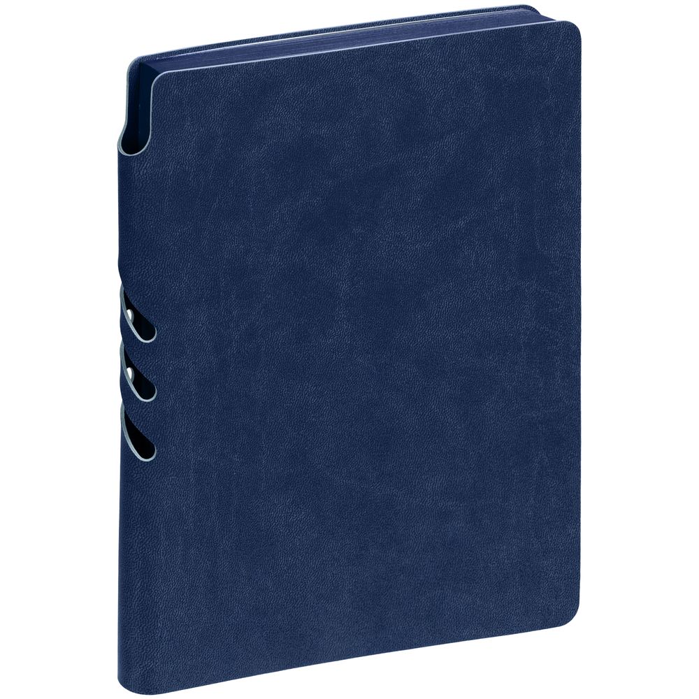 Гибкая обложка ежедневника выполнена из материала Latte, синий НН. Внутри корешка — специальное место для крепления ручки размером до 15х0,9 см.