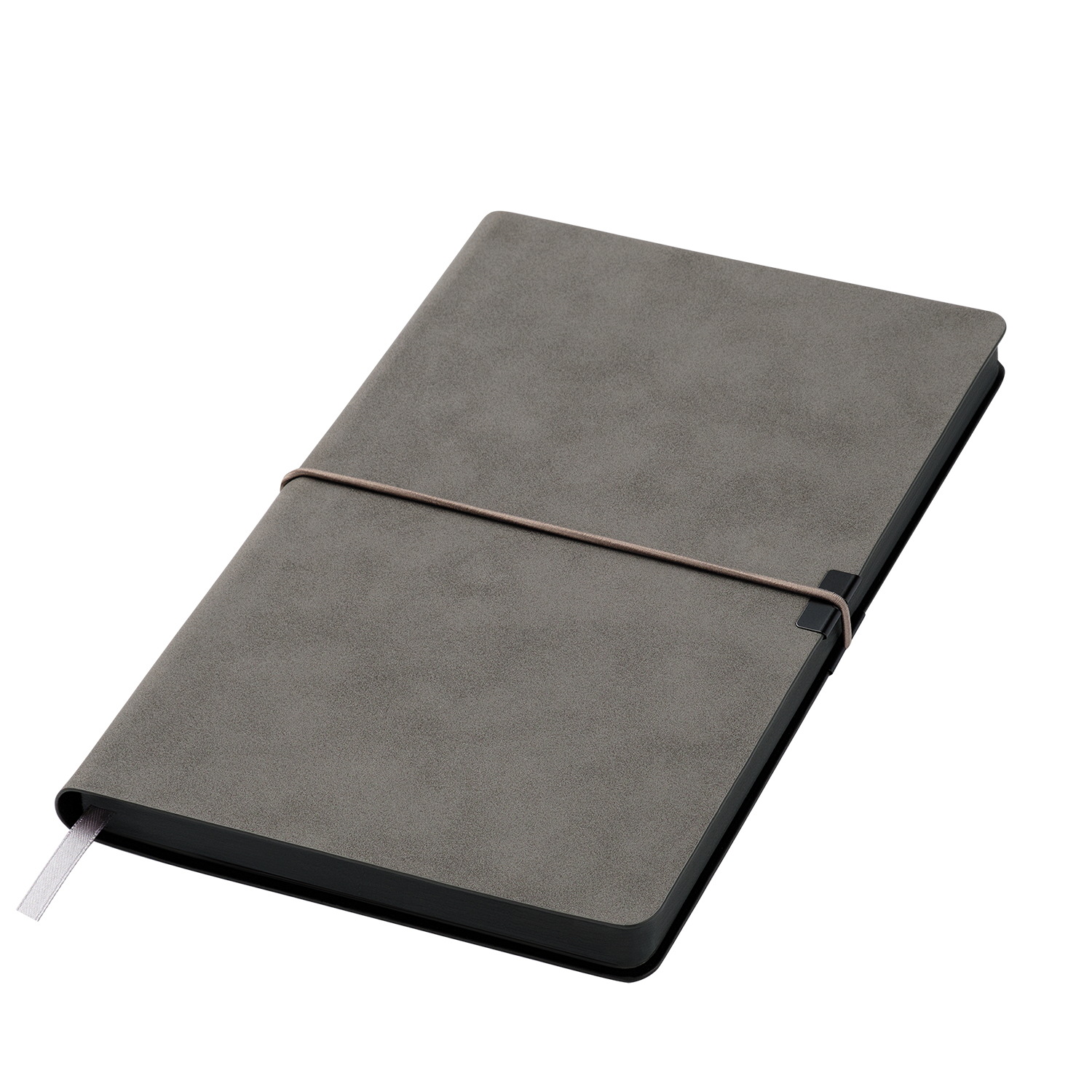 Горизонтальная резинка, фиксирующая обложку, дополнена металлическими элементами, которые не только защищают обложку от повреждений, но и служат стильным акцентом. Матовый срез в тон обложки и светло-кремовые страницы из гладкого, слегка шелковистого офсета подчеркивают изысканность дизайна. Атласное ляссе гармонично завершает образ этого элегантного ежедневника.—