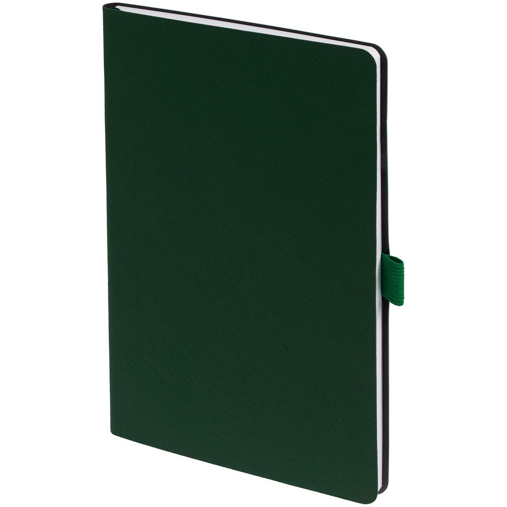 Ежедневник с гибкой обложкой, выполнен из материала Nice Touch, темно-зеленый, дополнен цветными ляссе и петлей-резинкой для ручки.