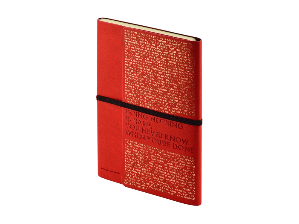 Так трудно ничего не делать, ведь совершенно непонятно, когда ты закончишь! Лаконичный слоган мотивирует к активным действиям. Планируй и завершай! Вот что кроется в элегантной надписи, выполненной золотым тиснением! А Flex обложка напоминает Будь гибким! Великолепный недатированный ежедневник Bilbao черно-синего цвета с тиснением фольгой. Бежевая бумага 65 г/м, широкая горизонтальная фиксирующая резинка. Гибкая обложка с покрытием Soft-touch. Особенность этого ежедневника - часть обложки внахлест может использоваться как закладка. Ежедневник упакован в картонный полукороб и термопленку.