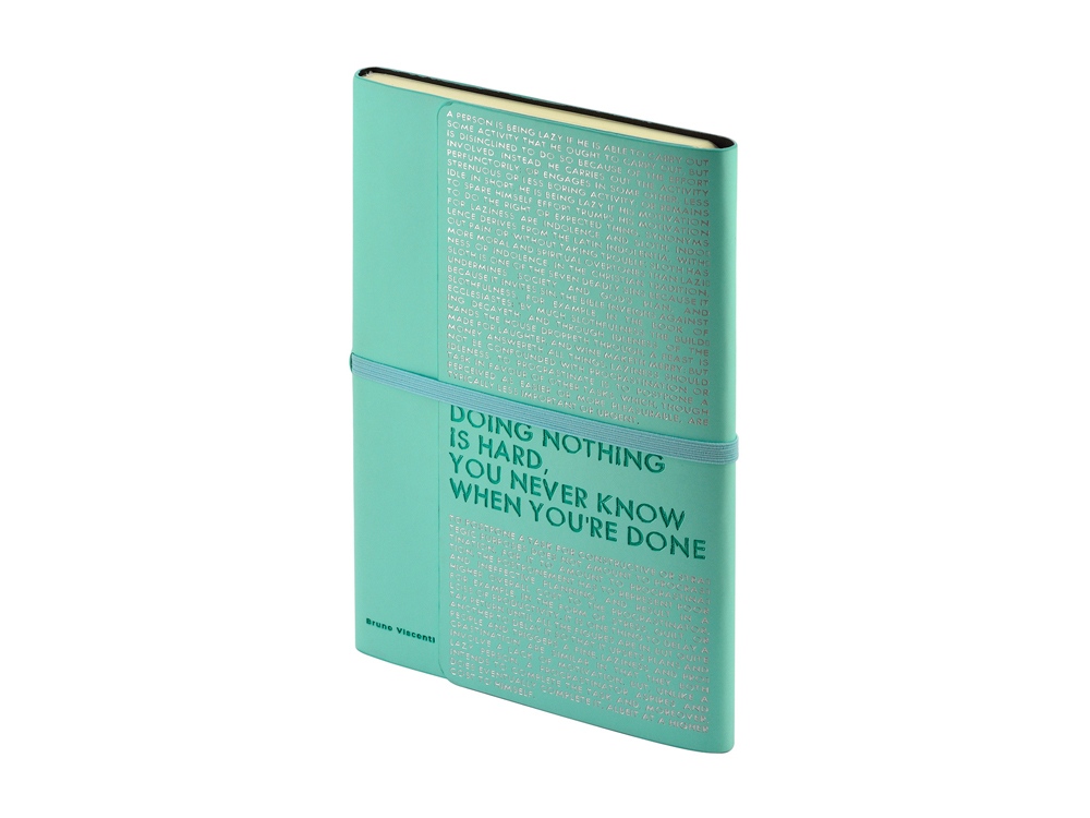 Так трудно ничего не делать, ведь совершенно непонятно, когда ты закончишь! Лаконичный слоган мотивирует к активным действиям. Планируй и завершай! Вот что кроется в элегантной надписи, выполненной золотым тиснением! А Flex обложка напоминает Будь гибким! Великолепный недатированный ежедневник Bilbao черно-синего цвета с тиснением фольгой. Бежевая бумага 65 г/м, широкая горизонтальная фиксирующая резинка. Гибкая обложка с покрытием Soft-touch. Особенность этого ежедневника - часть обложки внахлест может использоваться как закладка. Ежедневник упакован в картонный полукороб и термопленку.