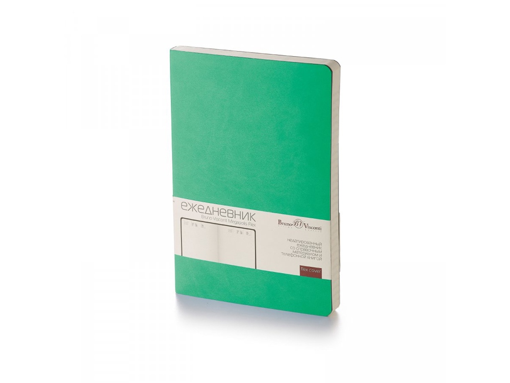 Ежедневник А5 недатированный Megapolis Velvet Flex, зеленый флуор