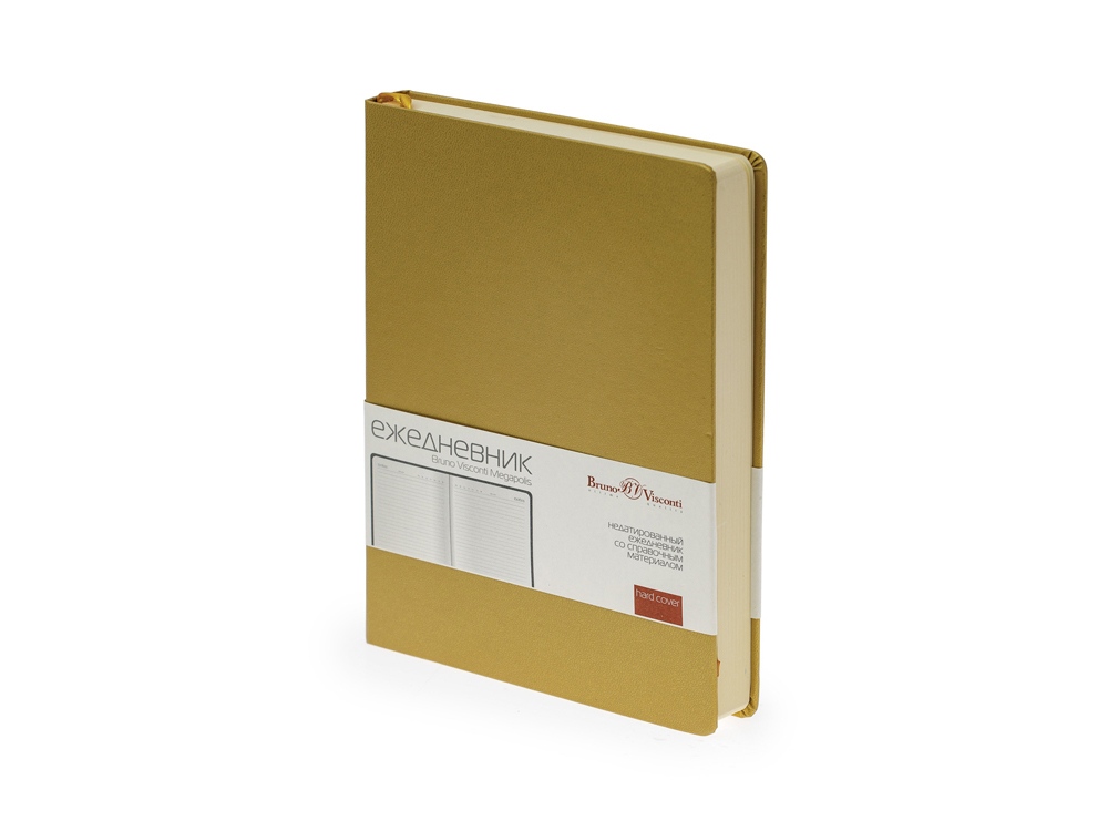 Ежедневник выпускается в универсальном формате А5. Размер обложки – 144*215 мм. В недатированном блоке для записей 320 страниц из тонированной бумаги бежевого цвета. Бумага плотностью 70 г/м2.